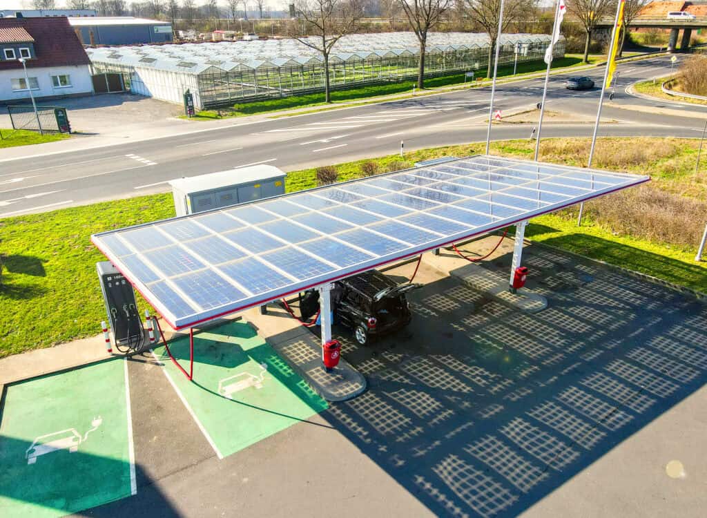 PM Pfennings Mobility betreibt Solaranlagen an 45 Tankstellen, die zusammen 1.900 kWp erzeugen und jährlich rund 4.000.000 kWh umweltfreundlichen Strom liefern.